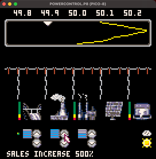 I watched this video some time ago about how in Britain they watch TV and control the power demand on the fly. This seemed like an interesting idea for a game, and here it is.